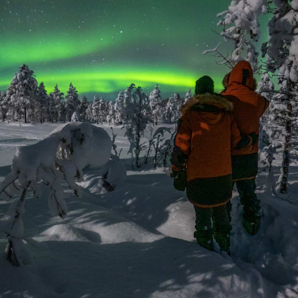 We would like to show you the northern lights in one of the best locations possible. While we are waiting for the aurora to show itself, you will meet our friendly huskies, enjoy a hearty meal in a comfortable fire hut, as well as learn all about northern lights and how to spot them by yourself!
