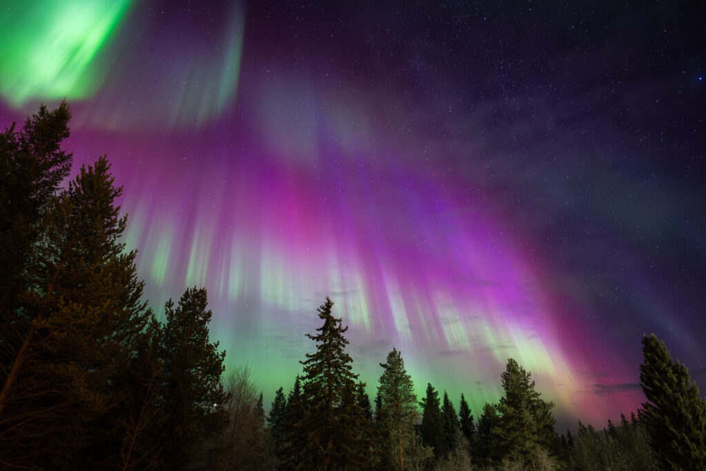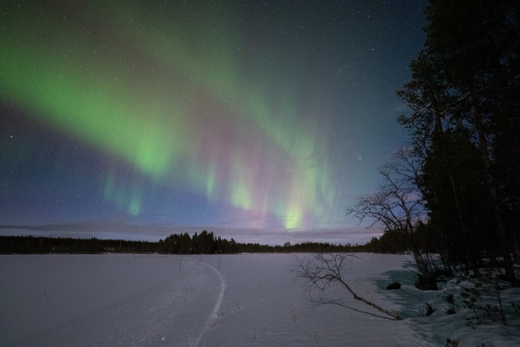We choose to stay in a wilderness cabin, because it will give us easy access to seeing the northern lights. The aurora is visible just outside your door!